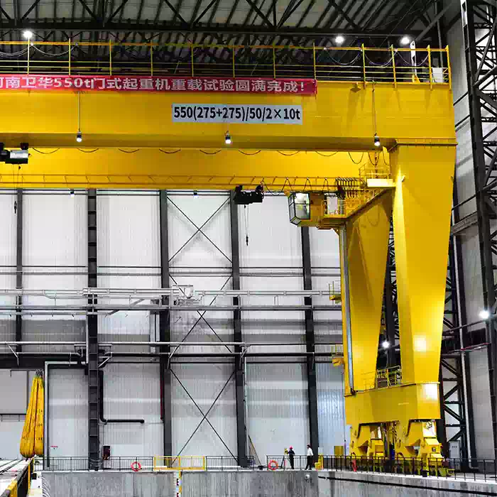 New design gantry crane is for lifting 5t~50t stuff. It's very convenient to install in new or existing workshops. This crane is easy to operate with various functions. With the advantages of compact structure, light weight and high lifting height, double girder overhead crane with electric hoist is widely used in workshops, metallurgy, warehouses and assembly shops etc.